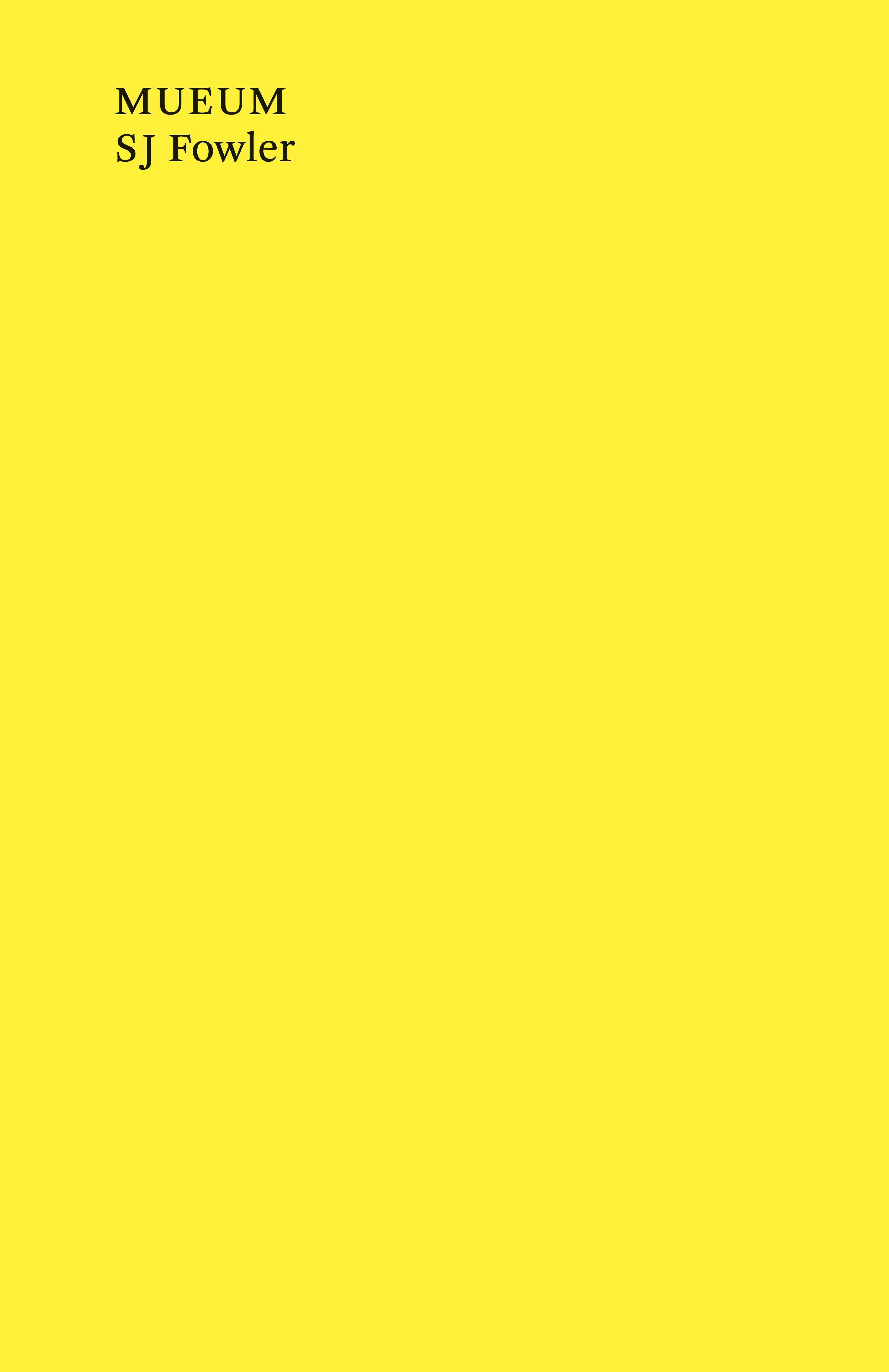 A novella of ludic menace, a puzzle without pieces, SJ Fowler’s MUEUM pictures the amassing and dismantling of a public edifice, brick by brick, in prose that refracts and breaks the light emitted by history’s ornaments and history’s omissions.