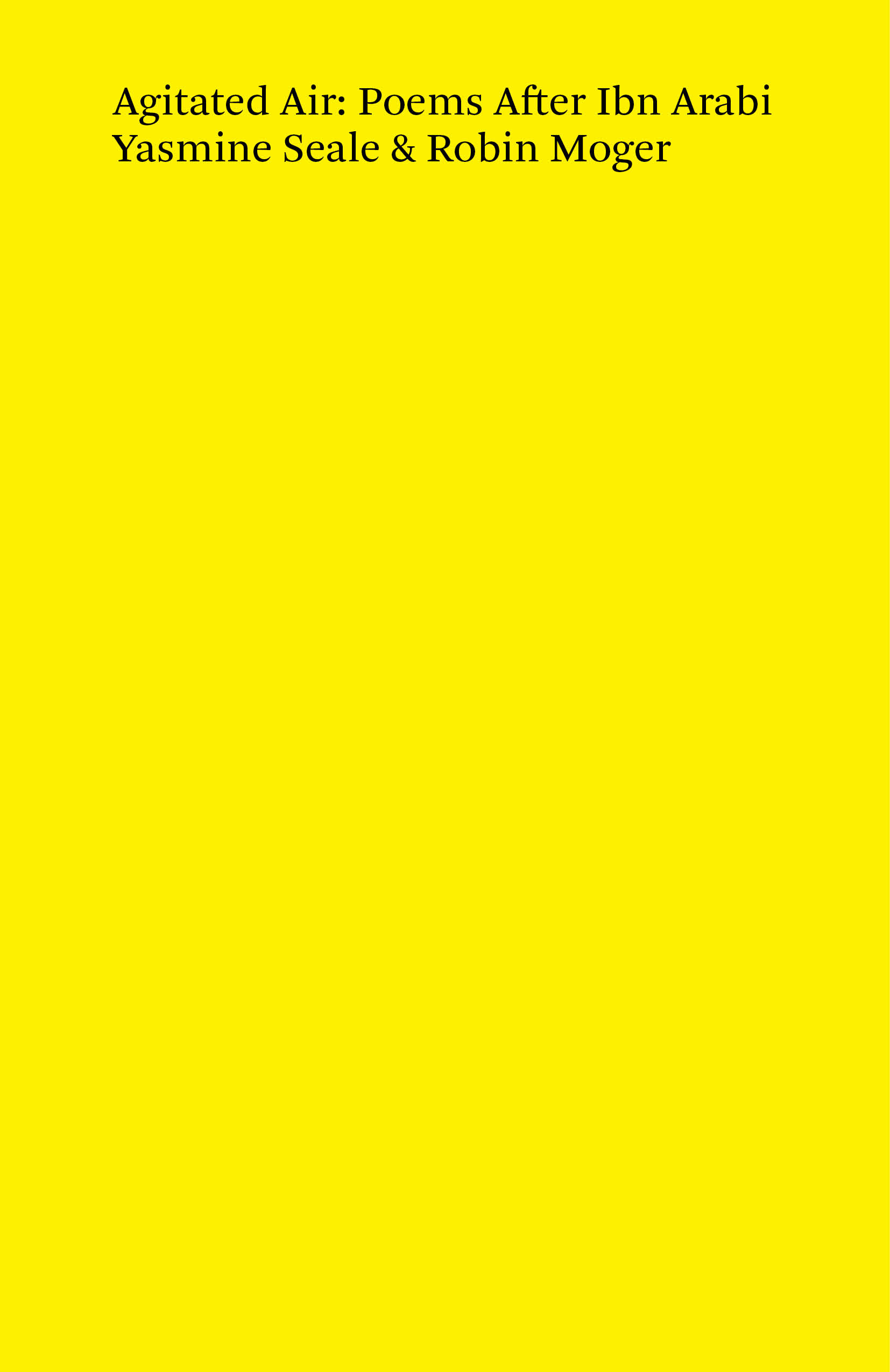 Agitated Air is a correspondence in poems between Istanbul and Cape Town, following the wake of The Interpreter of Desires. Collaborating at a distance, Yasmine Seale and Robin Moger work in close counterpoint, making separate translations of each poem, exchanging them, then writing new poems in response to what they receive. The process continues until they are exhausted, and then a new chain begins.