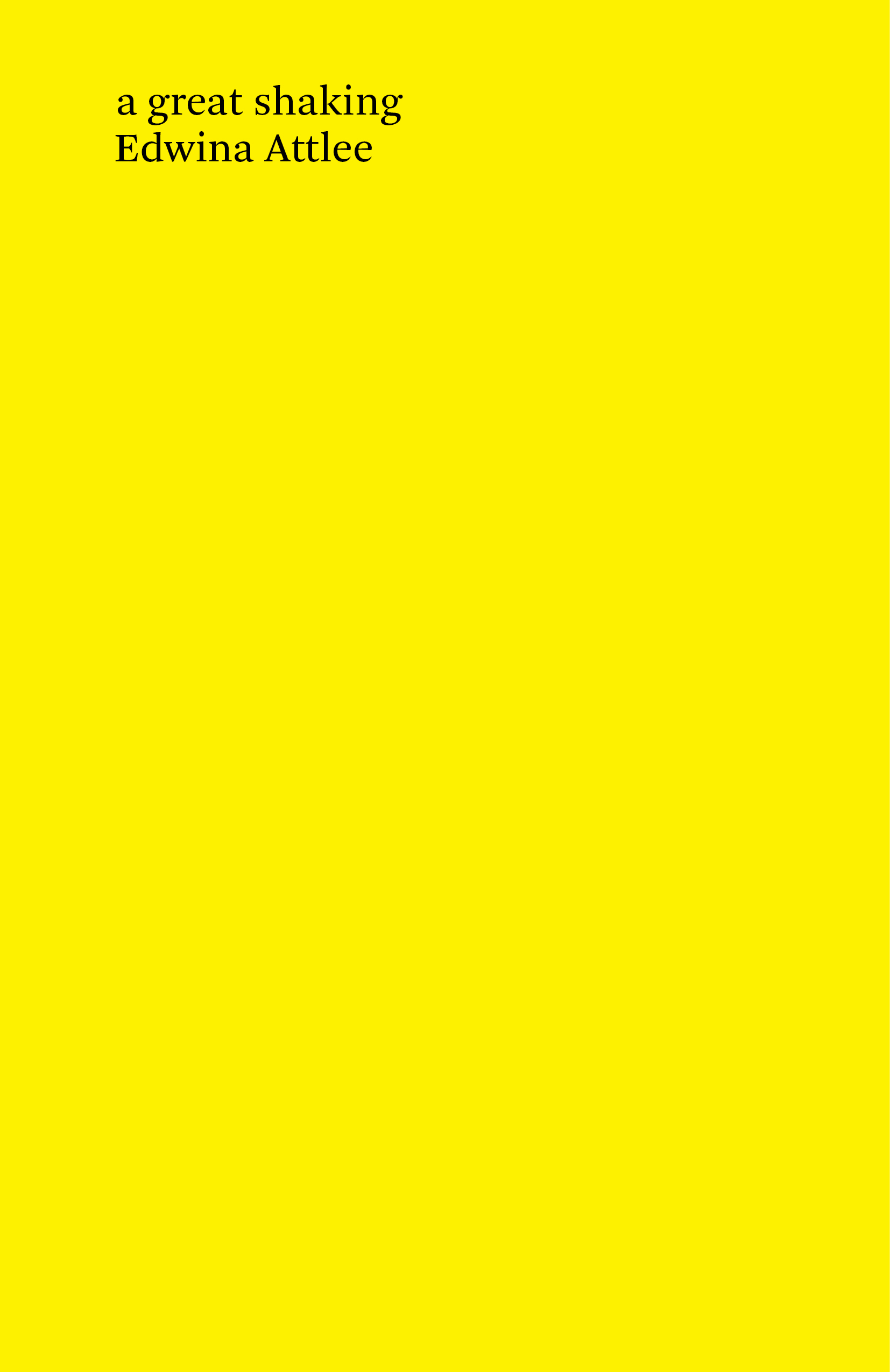 Edwina Attlee is the author of two pamphlets, Roasting Baby (if a leaf falls press, 2016) and the cream (Clinic, 2016). She teaches history to students of architecture in London. a great shaking (Tenement Press, 2024) is her first collection.
